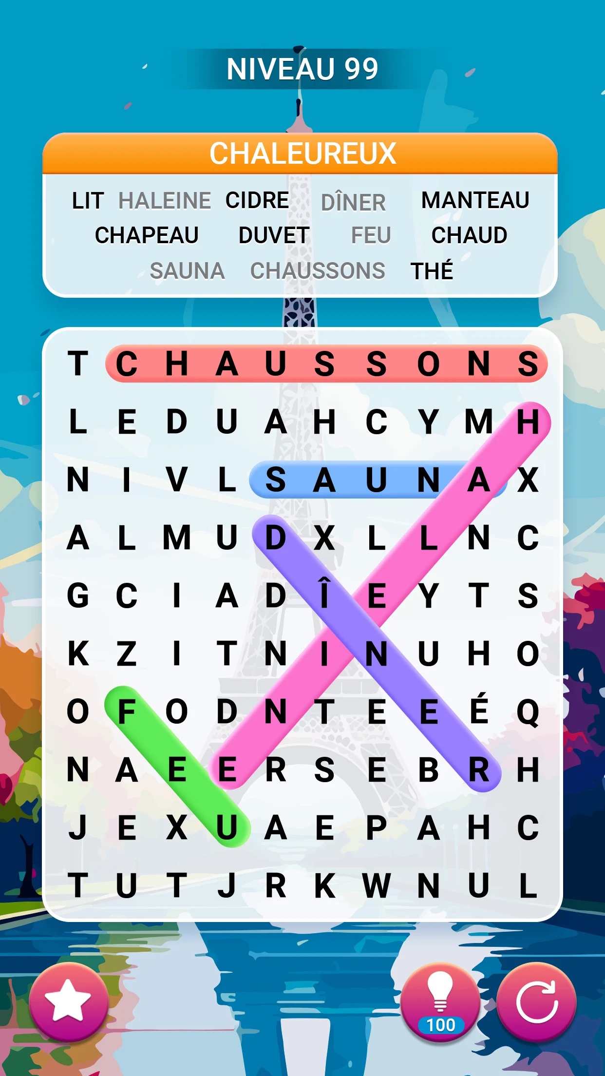 Super jeu! Il est un peu difficile, mais ce n'est pas grave. L'avantage, c'est qu'il y a des indices en haut de l'écran qui indiquent les mots à trouver. C'est vraiment génial ! Même d'autres jeux n'ont pas d'indices, mais celui-ci, si. Merci aux développeurs!